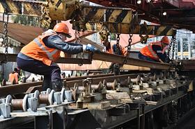 Укладка новых железнодорожных путей в районе станции Лосиноостровская.