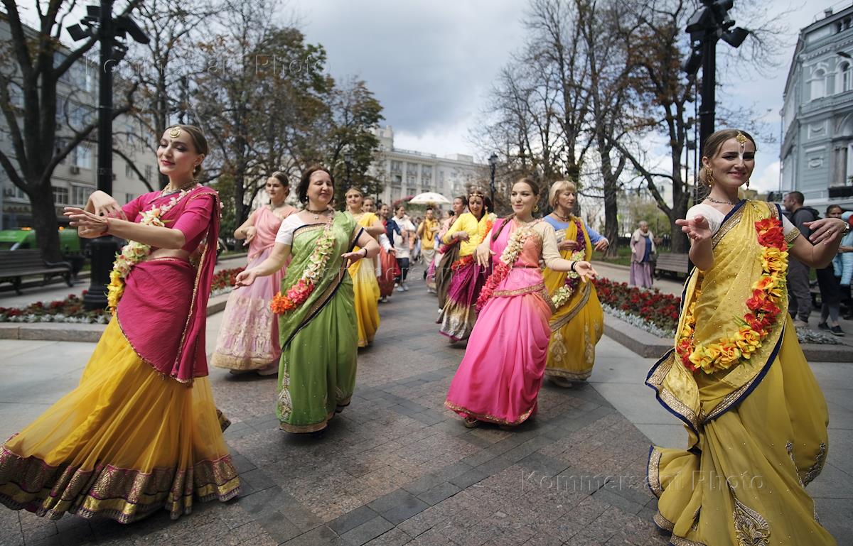 Жанровая фотография. Женщины в индийский костюмах на Никитском бульваре.