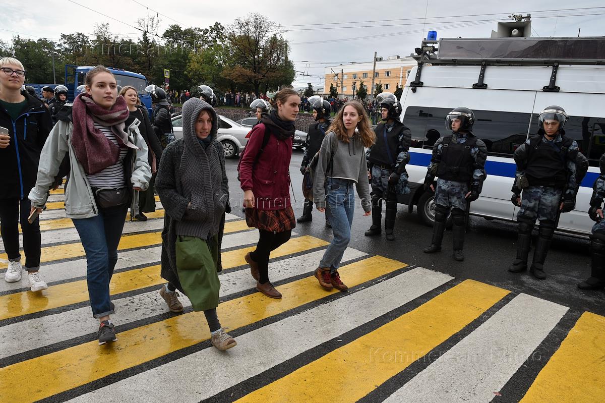 Участники митинга "За свободные выборы" на проспекте Академика Сахарова. Сотрудники полиции во время…