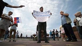Пикет в поддержку согласованного митинга в Москве "За честные выборы". Правозащитник Людмила…