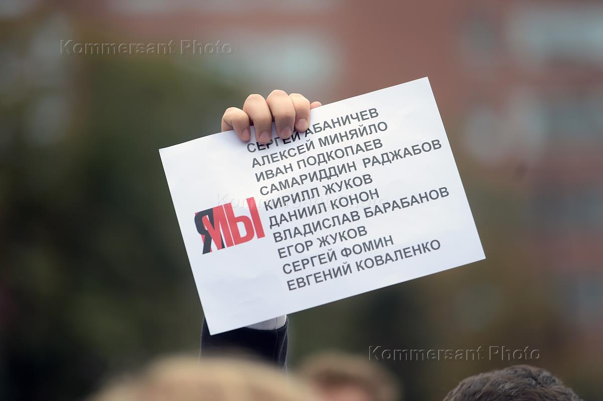 Участники митинга "За свободные выборы" на проспекте Академика Сахарова. Плакат "Спасибо всем кто…