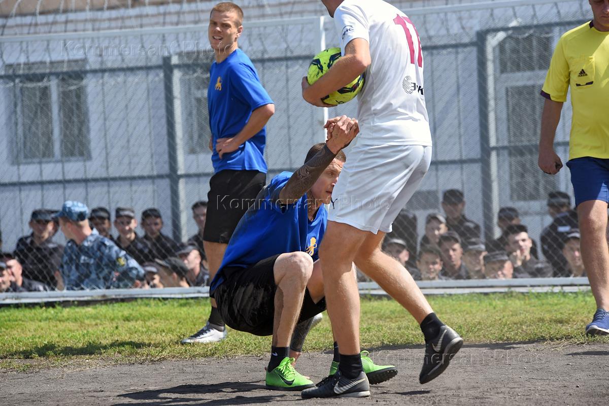 Правосудие Бывшие футболисты сборной России Александр Кокорин и Павел Мамаев во время Футбольного матча между командами ИК-4(«Исправительная колония № 4 Управления Федеральной службы исполнения наказаний по Белгородской области») и ФК "Салют" (Белгород).