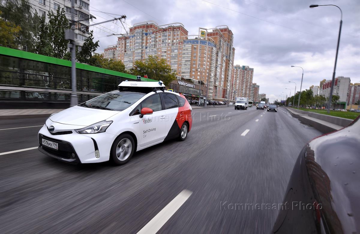 Беспилотный автомобиль компании "Яндекс" во время тестовой поездки по городу.