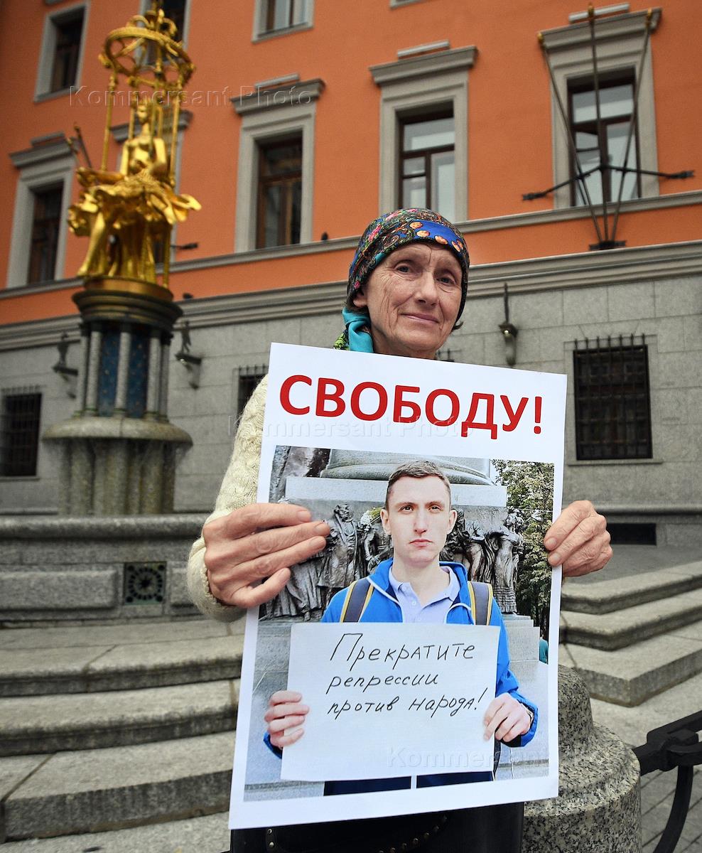 Участник одиночного пикета в поддержку Ивана Подкопаева, задержанного по делу о массовых беспорядках…