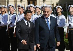 Премьер-министр Израиля Биньямин Нетаньяху (слева) и президент Украины Владимир Зеленский (справа)…