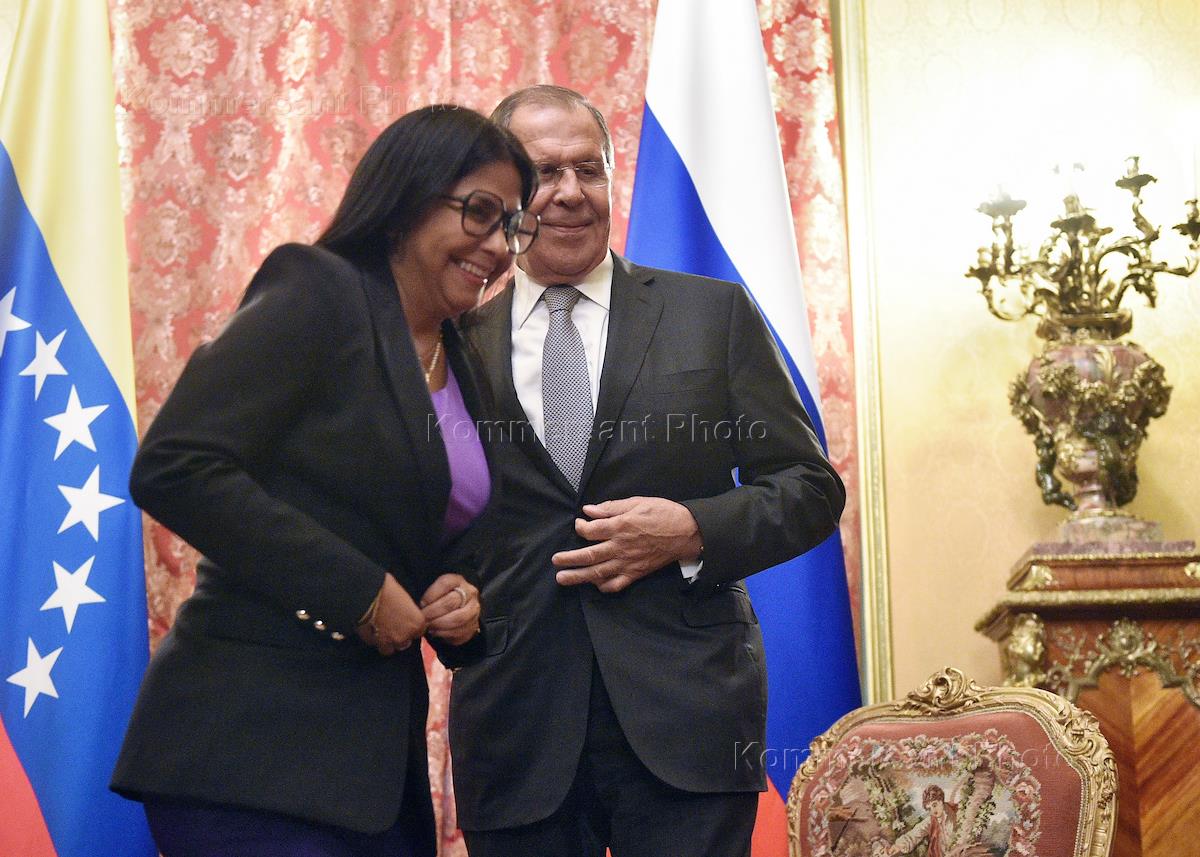 Министр иностранных дел России Сергей Лавров (слева) и вице-президент Венесуэлы Делси Родригес (в…
