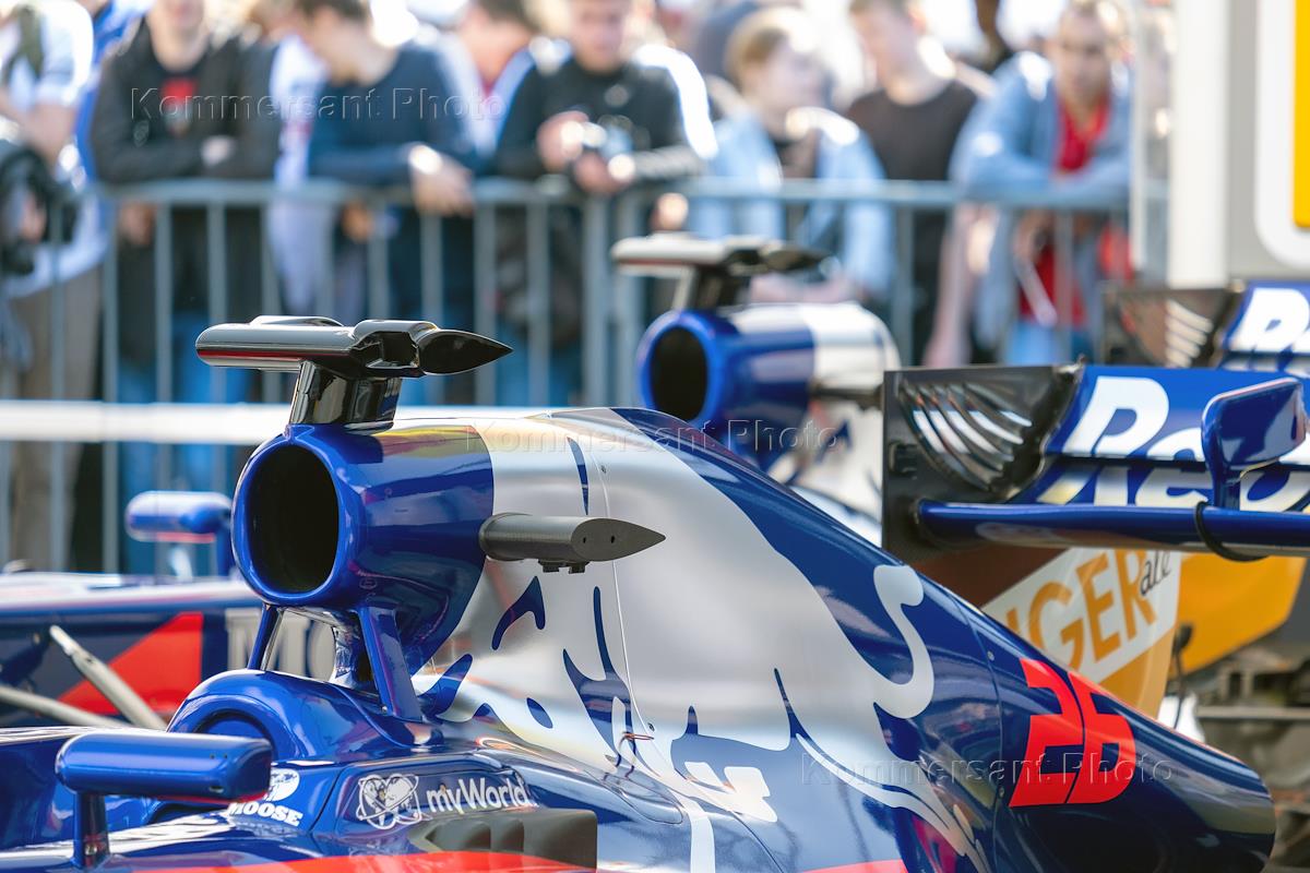 Экспозиция гоночной техники несостоявшихся део-заездов шоу Scuderia Toro Rosso Showrun powered by…