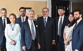 Министр иностранных дел Индии Субраманиям Джайшанкар (третий слева) после окончания интервью.