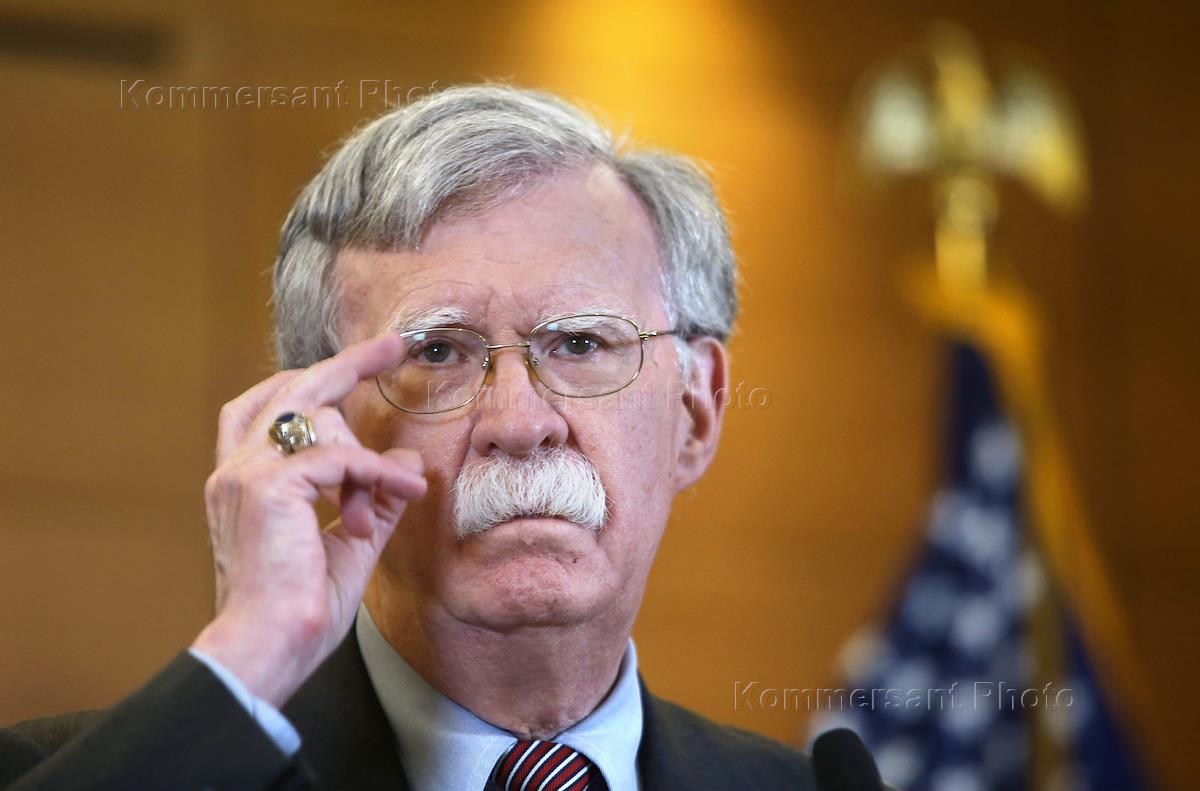 Cоветник президента США по вопросам национальной безопасности Джон Болтон во время пресс-конференции.