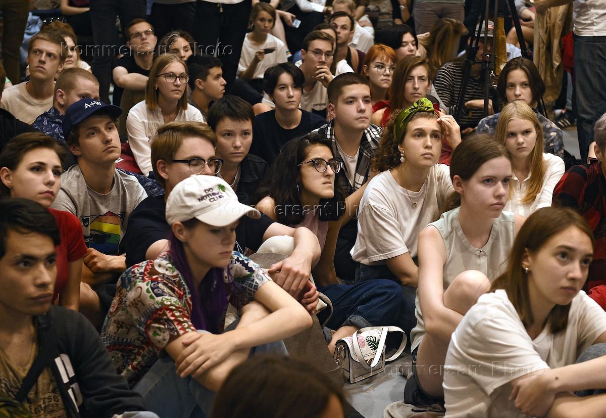 Участники несостоявшегося мероприятия "Университет в яме" (амфитеатр на Хохловской площади) во…