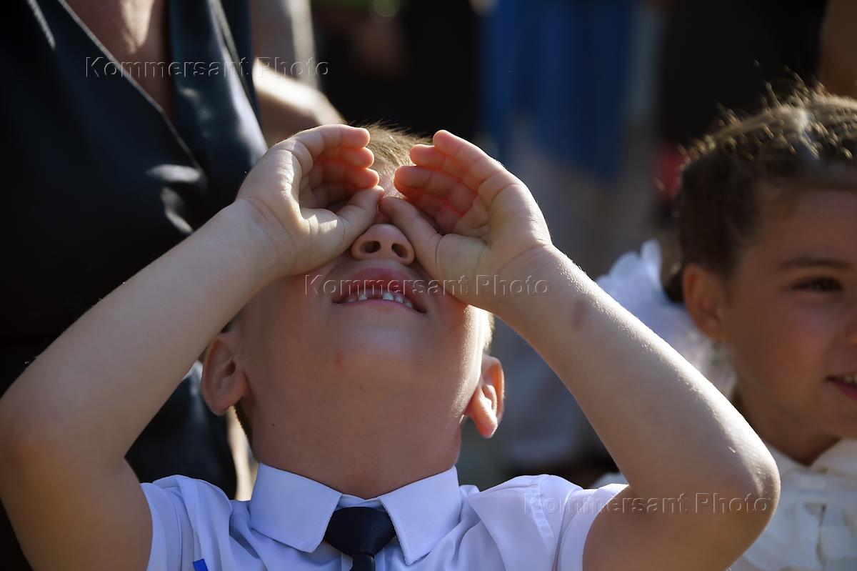 Празднование Дня знаний. Ученики на торжественной линейке, посвященной началу учебного года.