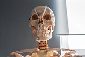 Жанровая фотография. Макет скелета и черепа в кабинете биологии.