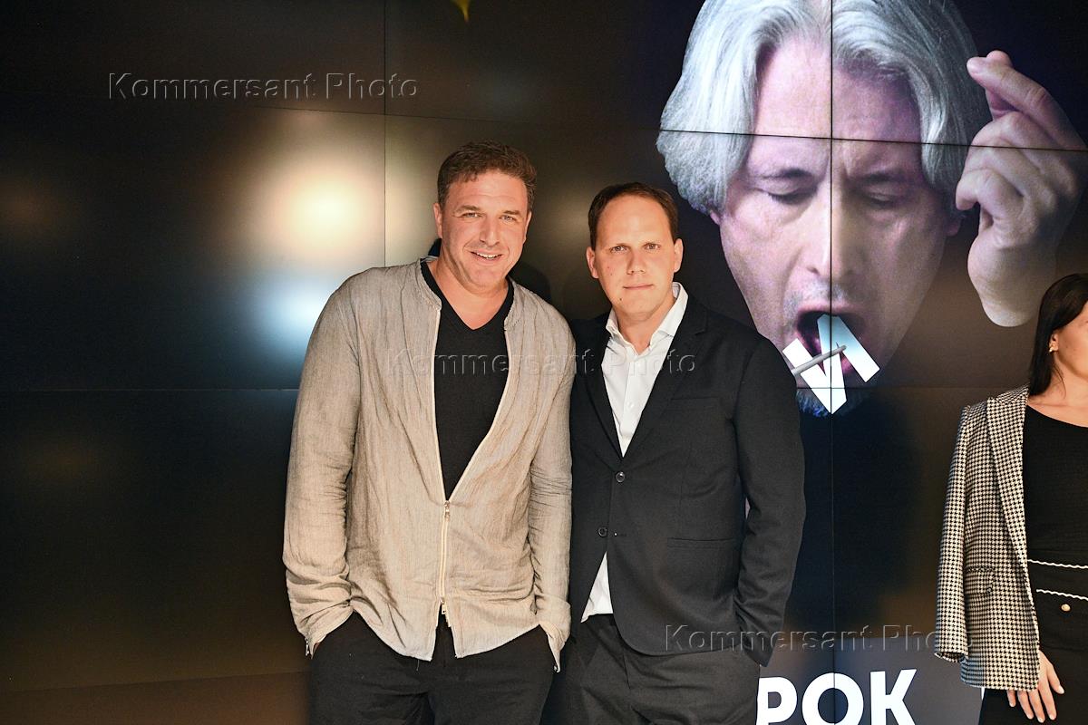 Премьера фильма "Сорокин Трип" в Центре документального кино. Актер Максим Виторган (слева) и…