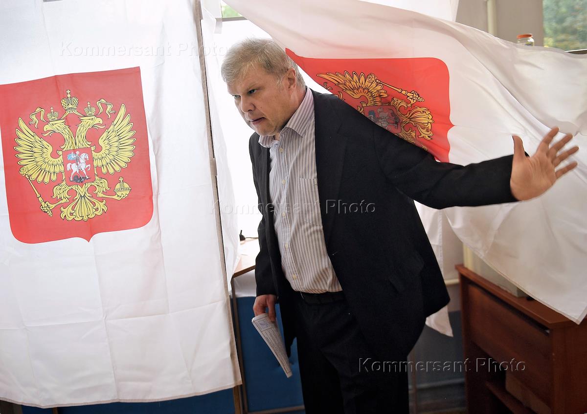 Единый день голосования. Председатель партии "Яблоко" Сергей Митрохин во время голосования на…