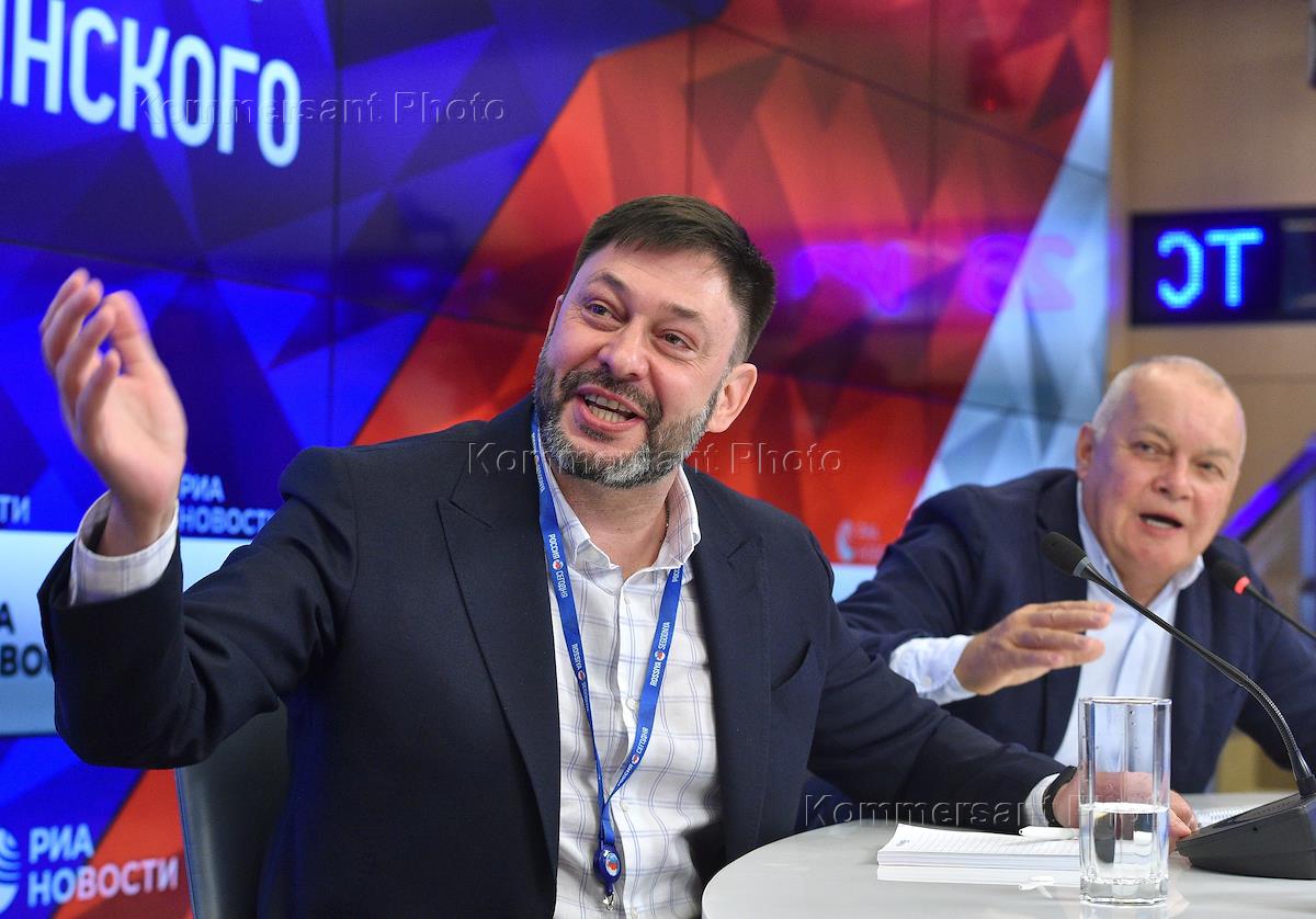 Главный редактор информационного портала "РИА Новости Украина" Кирилл Вышинский (справа) и…