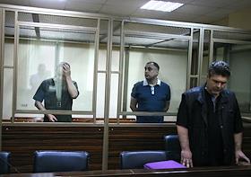 Правосудие Дмитрий Гнатив, в прошлом следователь по особо важным делам УФСБ по Краснодарскому краю, известный расследованиями резонансных уголовных дел (слева), и адвокат Владислав Оленский, во время вынесения приговора, в зале Северо-Кавказского окружного военного суда.