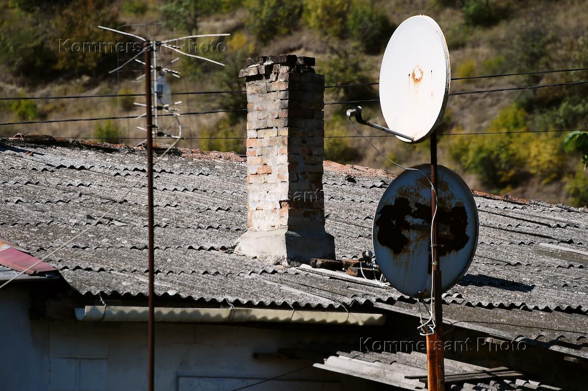 Жанровая фотография. Крыша жилого дома крытая шифером и антенна телевидения.
