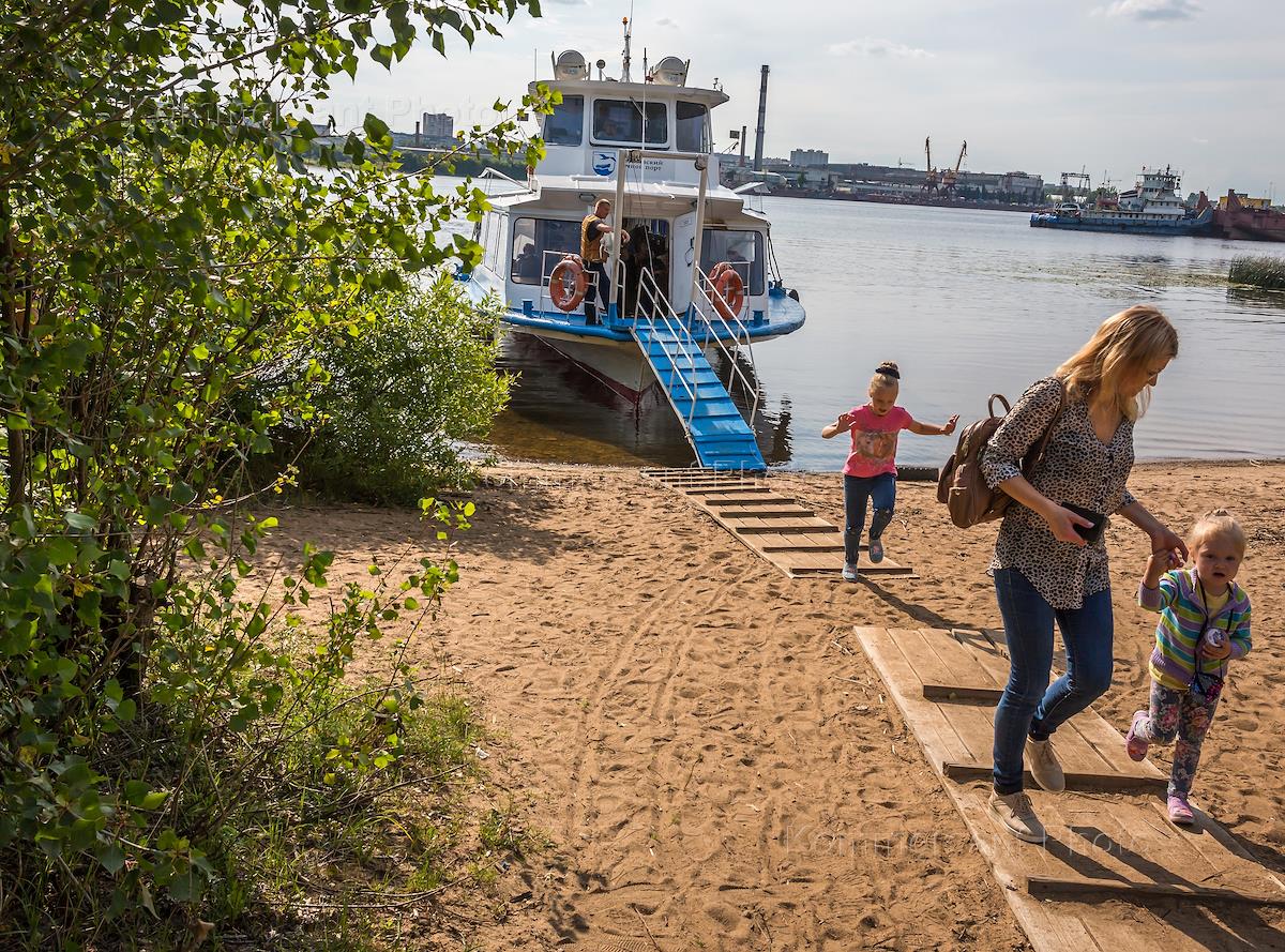 Теплоход "Москва - 192" на остановке Парково, пристань "Вакарево". Пассажиры выходят на берег.