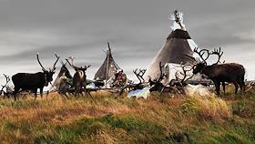 Стойбище оленеводов хантов в тундре.