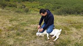 Приуральский район. Стойбище оленеводов хантов в тунде. Оленеводы лечат ногу больному оленю.