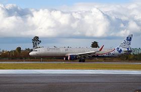 Церемония открытия взлетно-посадочной полосы в аэропорту "Шереметьево". Самолет авиакомпании…