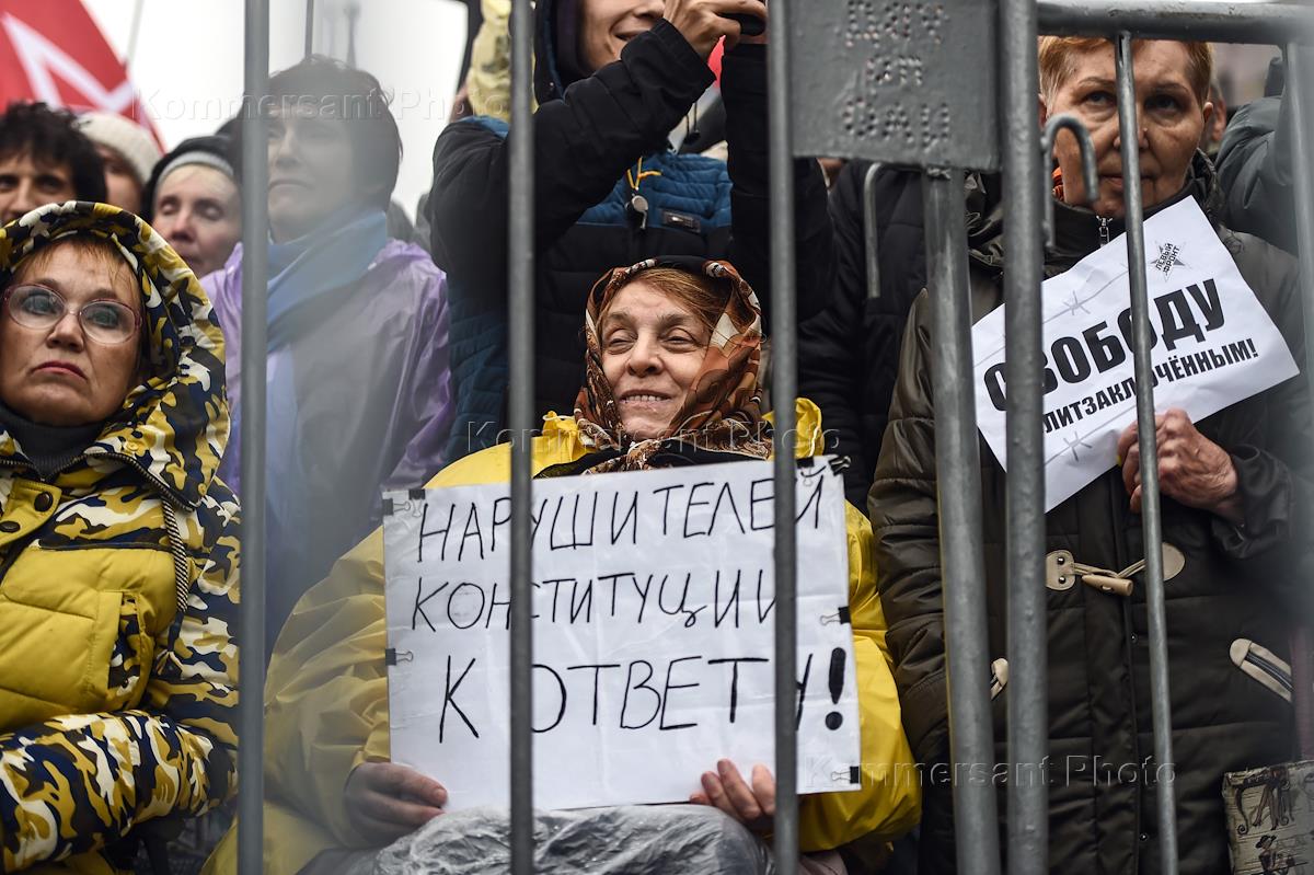Участники митинга за свободу политзаключенных на проспекте Сахарова.