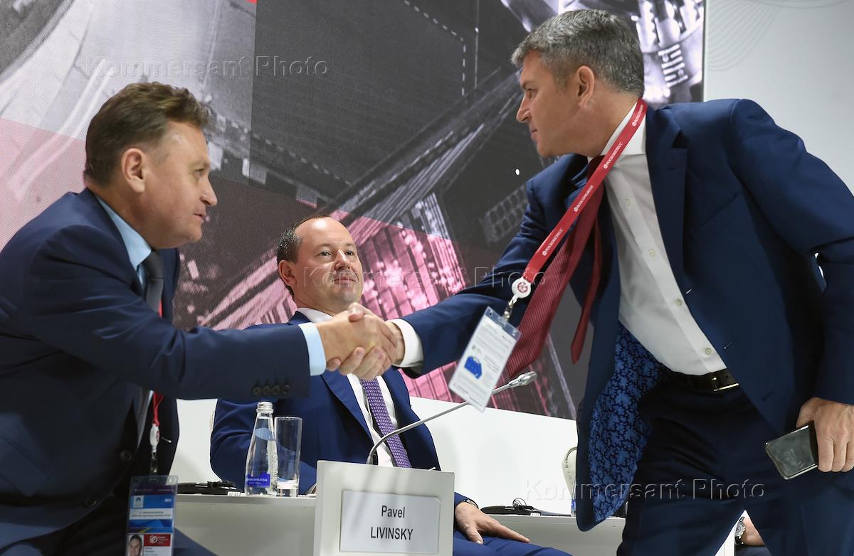 Форум "Российская энергетическая неделя-2019" в Центральном выставочном зале "Манеж". Слева направо:…