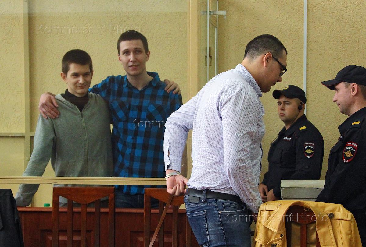 Обвиняемые по делу о "Telegram-революции" Владислав Мордасов (справа), Ян Сидоров (слева) и Вячеслав…