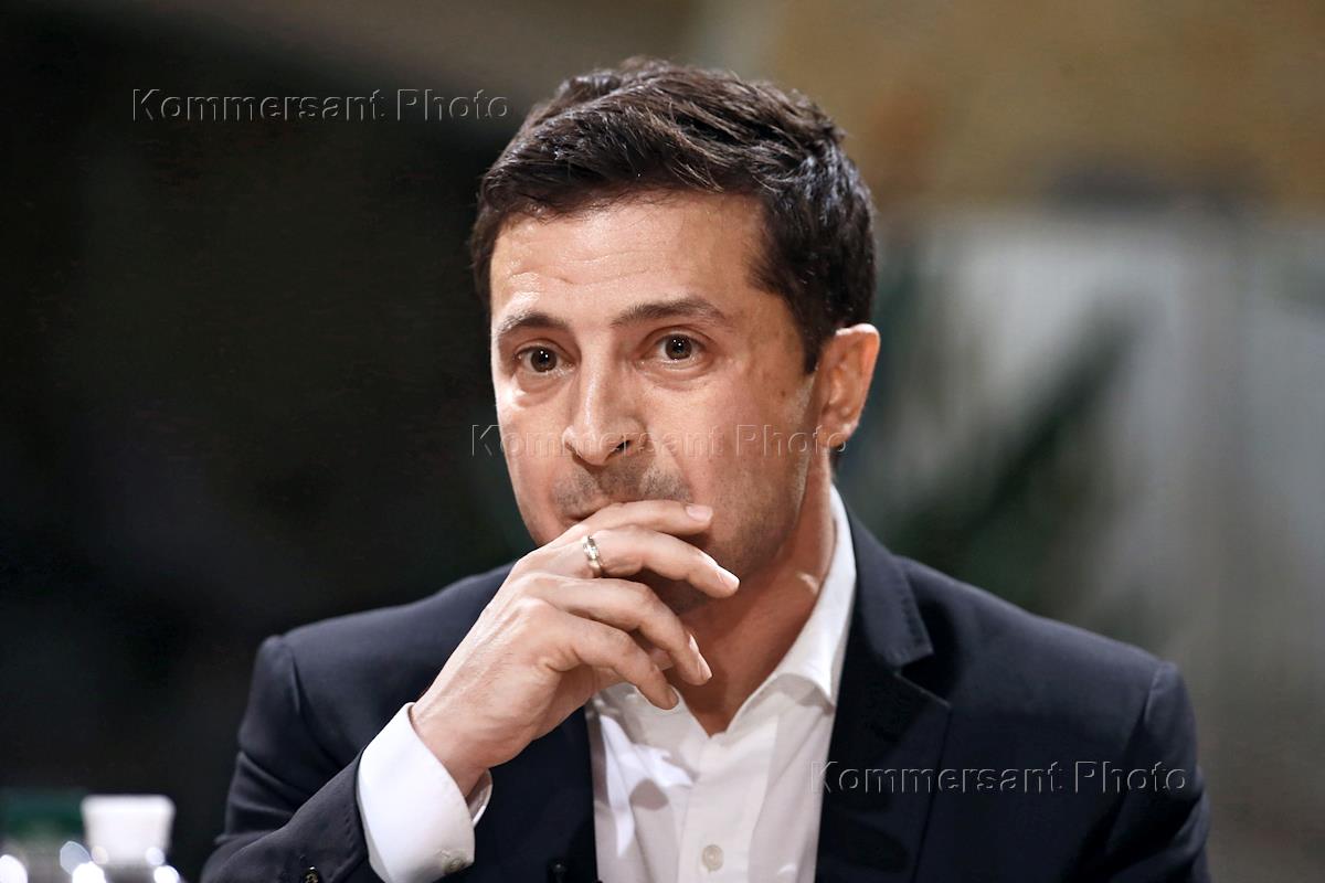 Президент Украины Владимир Зеленский во время пресс-конференции на территории фудкорта Kyiv Food…