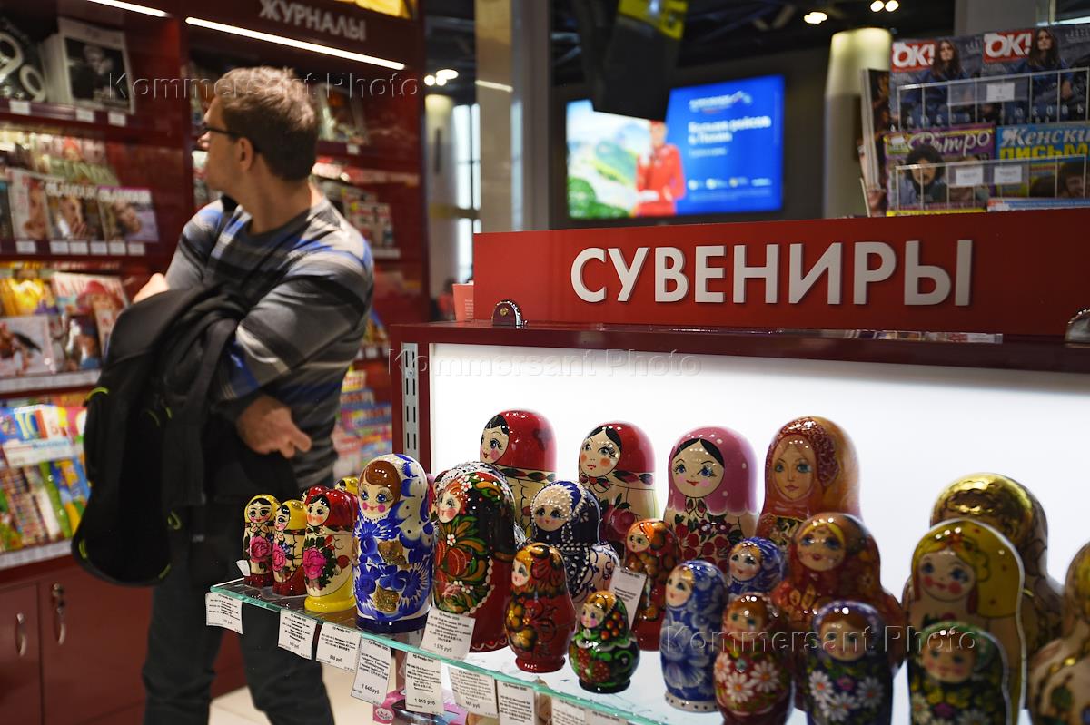 Жанровая фотография. Пассажиры в Международном аэропорту Шереметьево имени А.С.Пушкина. Торговля…