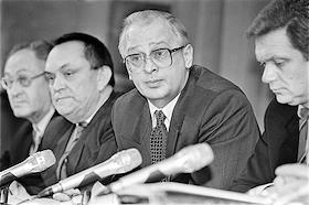 Руководитель объединения "Базальт" Анатолий Обухов во время пресс-конференции.