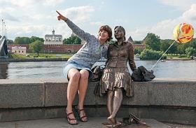 Виды Великого Новгорода. Девушка позирует у памятника туристке, установленного в 2009 году у…