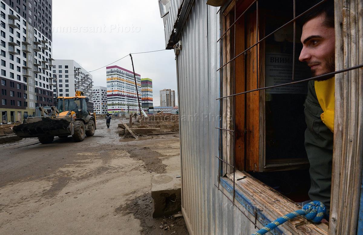 Жилые комплексы компании ПИК. Строители во время работы.