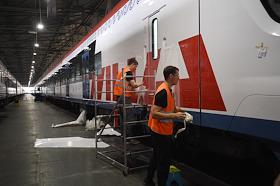 Брендирование поездов "Иволга" для Московских центральных диаметров (МЦД) в ремонтно-экипировочном депо Москва-Киевская