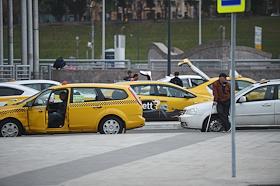Жанровая фотография. Стоянка автомобилей такси на площади перед Киевским вокзалом.