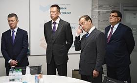 Председатель Правительства России Дмитрий Медведев (справа), заместитель председателя Правительства…