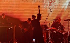 Группа UNKLE во время выступления в концертном зале "Известия Hall". Фрэн Лобо (в центре)