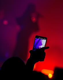 Концерт группы UNKLE в концертном зале "Известия Hall". Жанровая фотография. Зритель записывает…