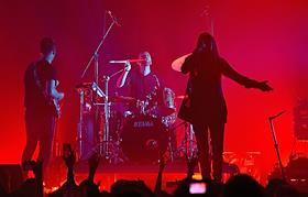 Группа UNKLE во время выступления в концертном зале "Известия Hall". Лила Мосс (в центре)