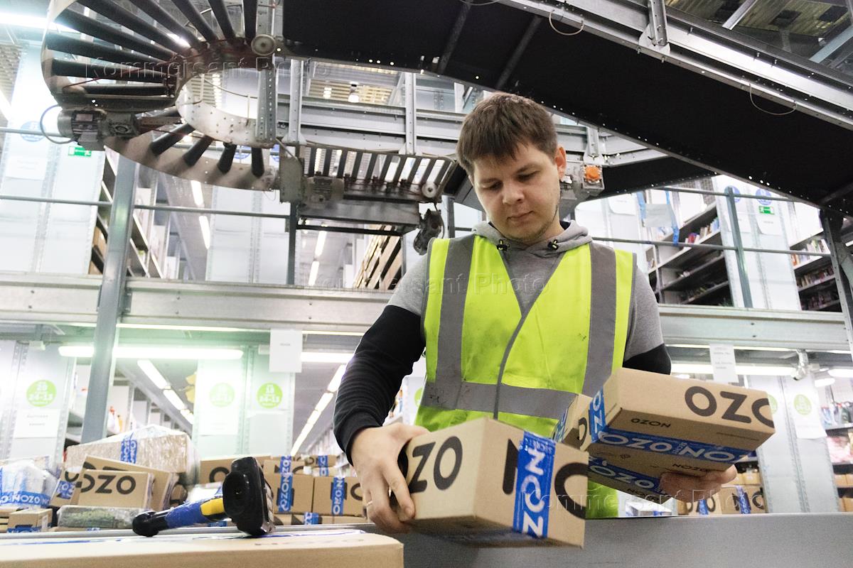 Готовый товар в логистическом и сортировочном центрах интернет-магазина Ozon.ru.