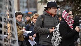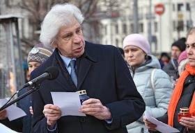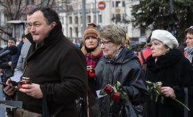 Акция "Возвращение имен" накануне Дня памяти жертв политических репрессий у Соловецкого камня на Лубянской площади.