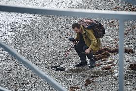 Виды Ялты. Жанровые фотография. Мужчина с металлоискателем на пляже.