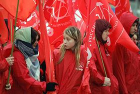 Шествие колонны КПРФ по Канавинскому мосту и митинг в честь 102-й годовщины революции.