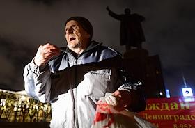 Митинг сторонников коммунистической идеологии в 102 годовщину Октябрьской революции на площади Ленина у Финляндского вокзала