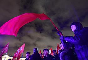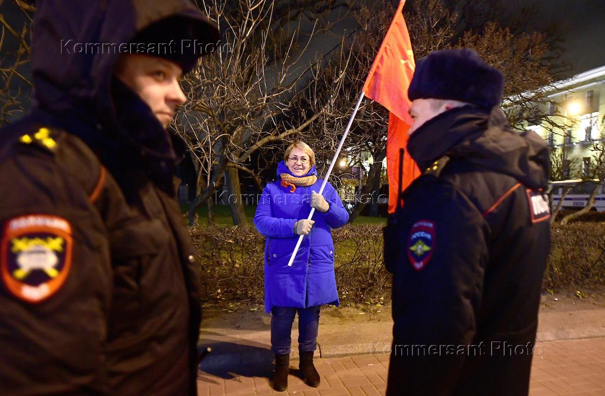 Митинг сторонников коммунистической идеологии в 102 годовщину Октябрьской революции на площади Ленина у Финляндского вокзала