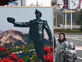 Политическая ситуация в Донецкой области. Жанровая фотография. Памятник поэту Тарасу Шевченко на…