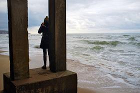 Виды Калининградской области. Жанровая фотография. Девушка стоит на берегу моря.