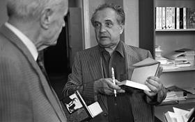 Писатель Александр Зиновьев во время встречи с читателями.