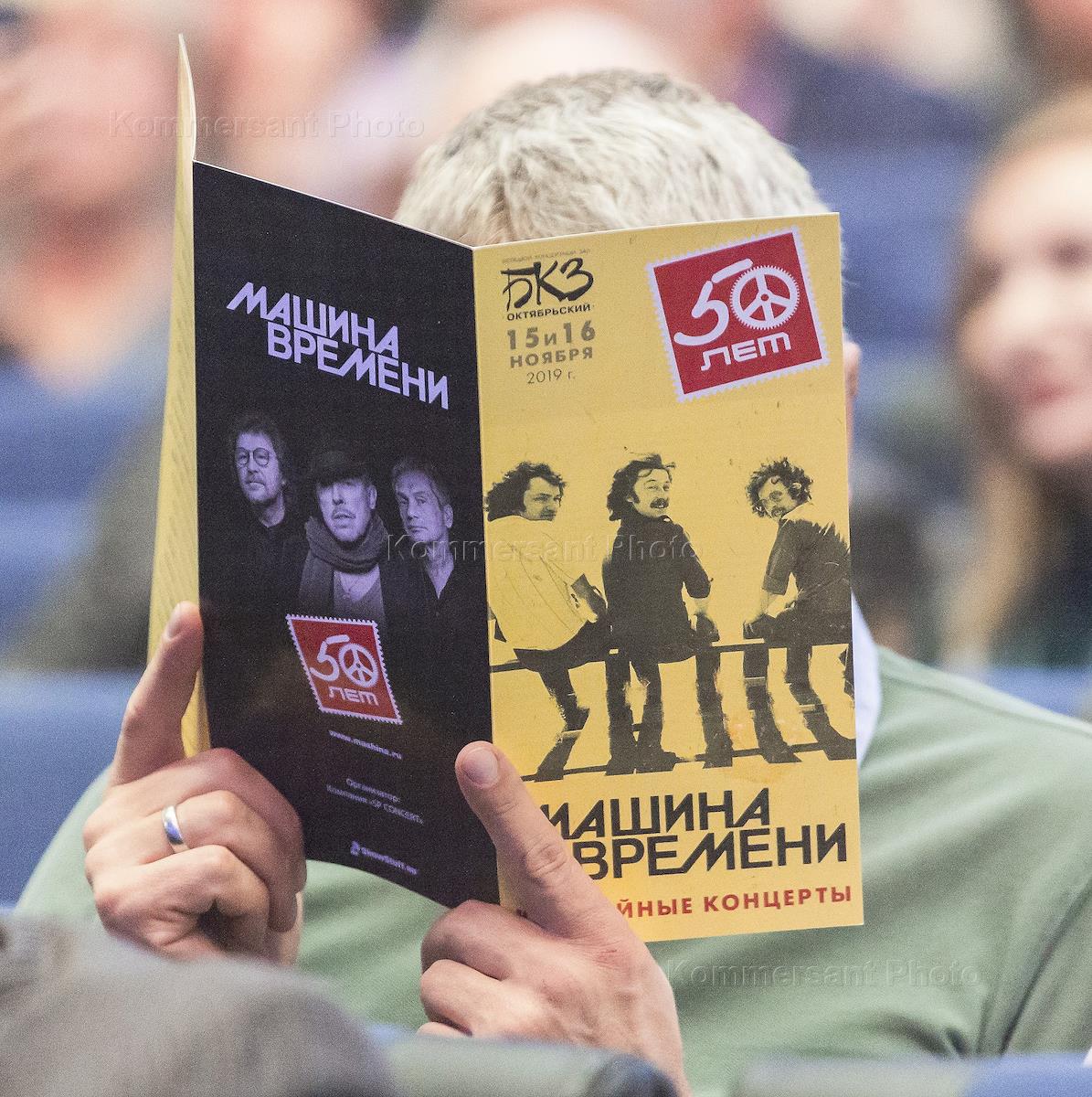 Концерт группы "Машины времени", посвященный 50-летию группы. Зритель с программкой концерта.
