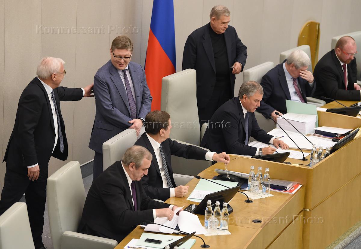 Пленарное заседание Государственной думы (ГД) России. Слева направо: председатель комитета ГД России…